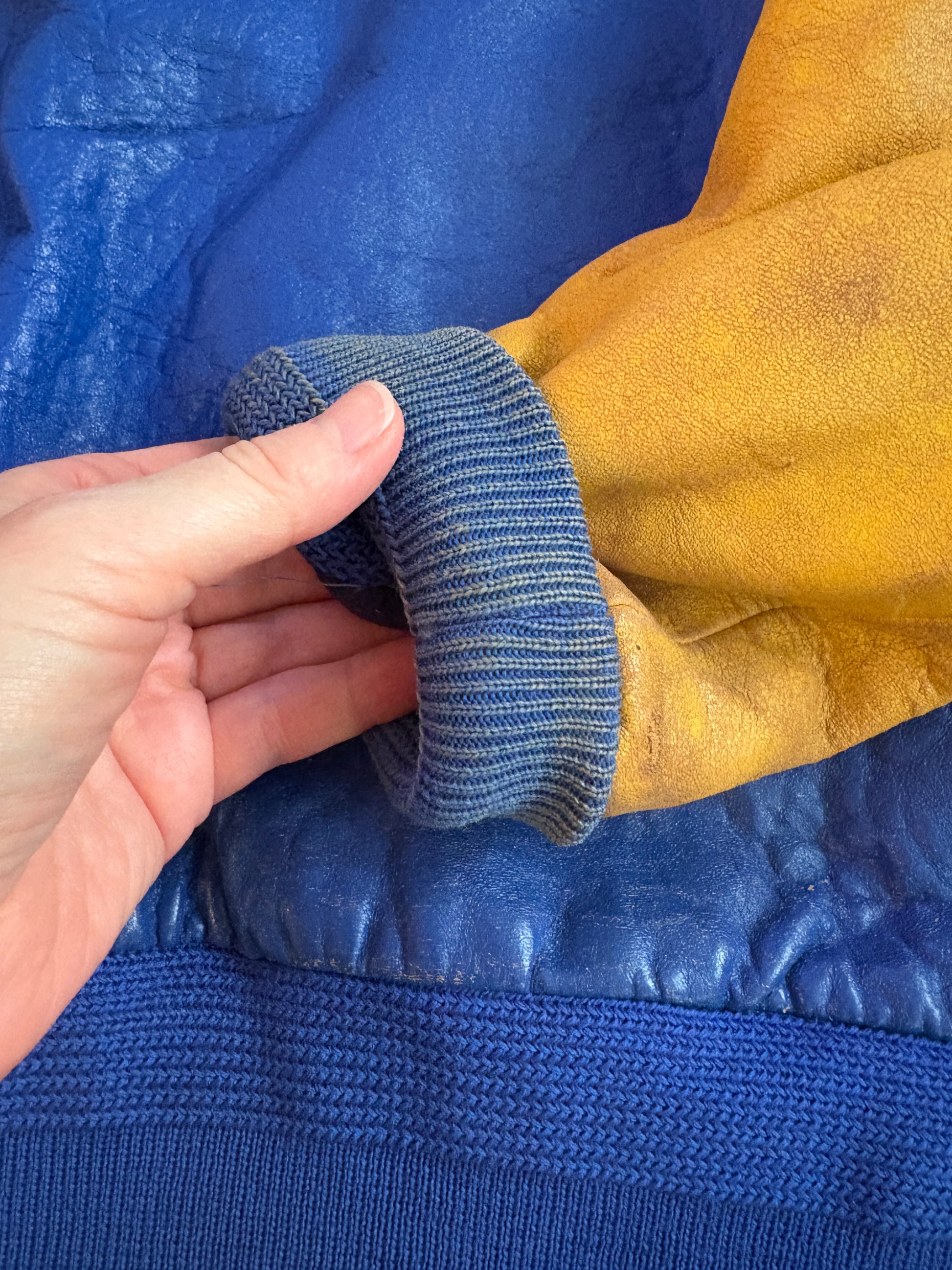 Signs of wear on the leather throughout, as well as discoloration on the inside of the wrist cuffs (pictured)